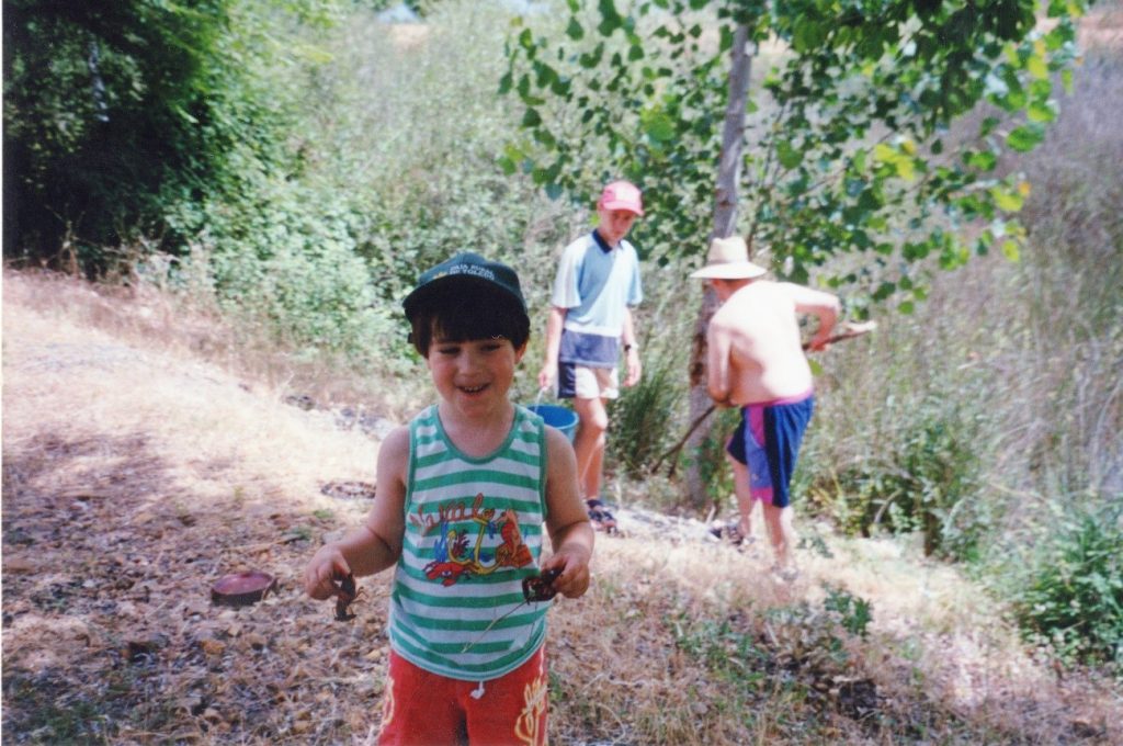 Son Los ojos del niño, junto con su sonrisa, los que anuncian lo maravilloso del descubrimiento de la naturaleza. Esta mañana de verano caminamos hasta el arroyo de la cañada, allí abundan los cangrejos autóctonos de rio de la región de Castilla La Mancha. Al acercamos al pilón que recoge el agua para abastecer al ganado, nos recibe el canto de las ranas; con las manos recogemos el agua del caño para saciar la sed y refrescarnos.